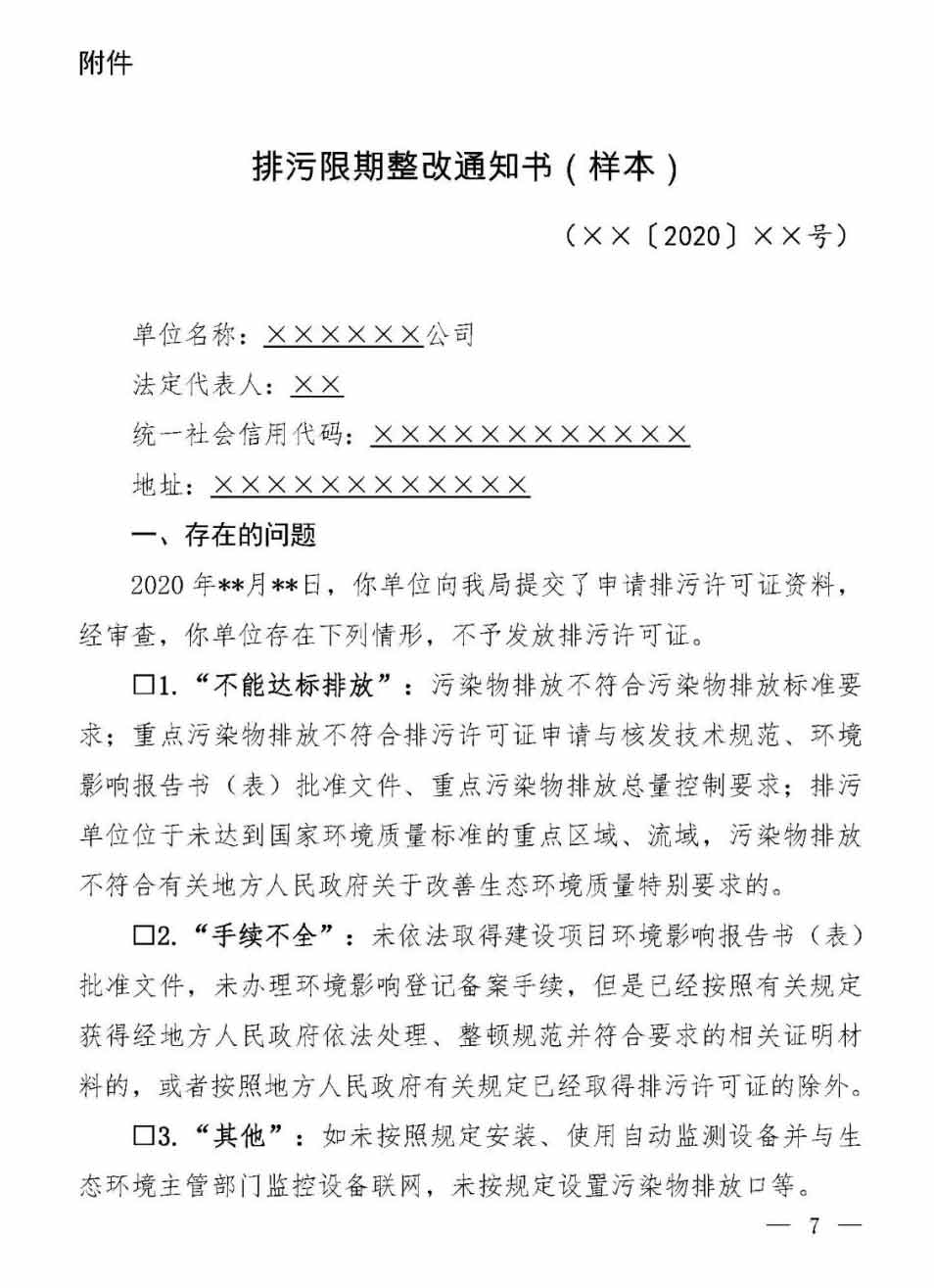 排污單位存在下列情形之一的,生態環境主管部門暫不予核發排污許可證,并下達排污限期整改通知書(以下簡稱整改通知書)。