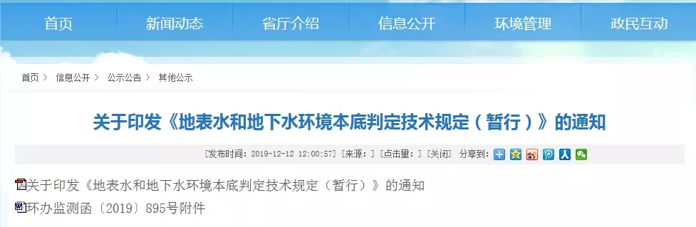 地表水以《地表水環境質量標準》常規監測項目Ⅲ類水質標準限值為判定標準。地表水型飲用水源以《地表水環境質量標準》常規監測項目Ⅲ類水質標準限值和補充項目、特定項目標準限值為判定標準。地下水型飲用水源以《地下水質量標準》常規和非常規監測項目Ⅲ類水質標準限值為判定標準。